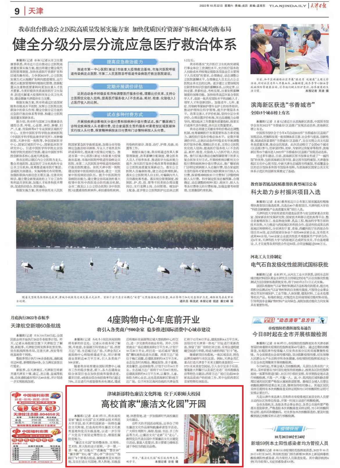 《天津日报》:津城新添特色廉洁文化阵地 位于天职师大校园 高校首家“廉洁文化园”开园(图)